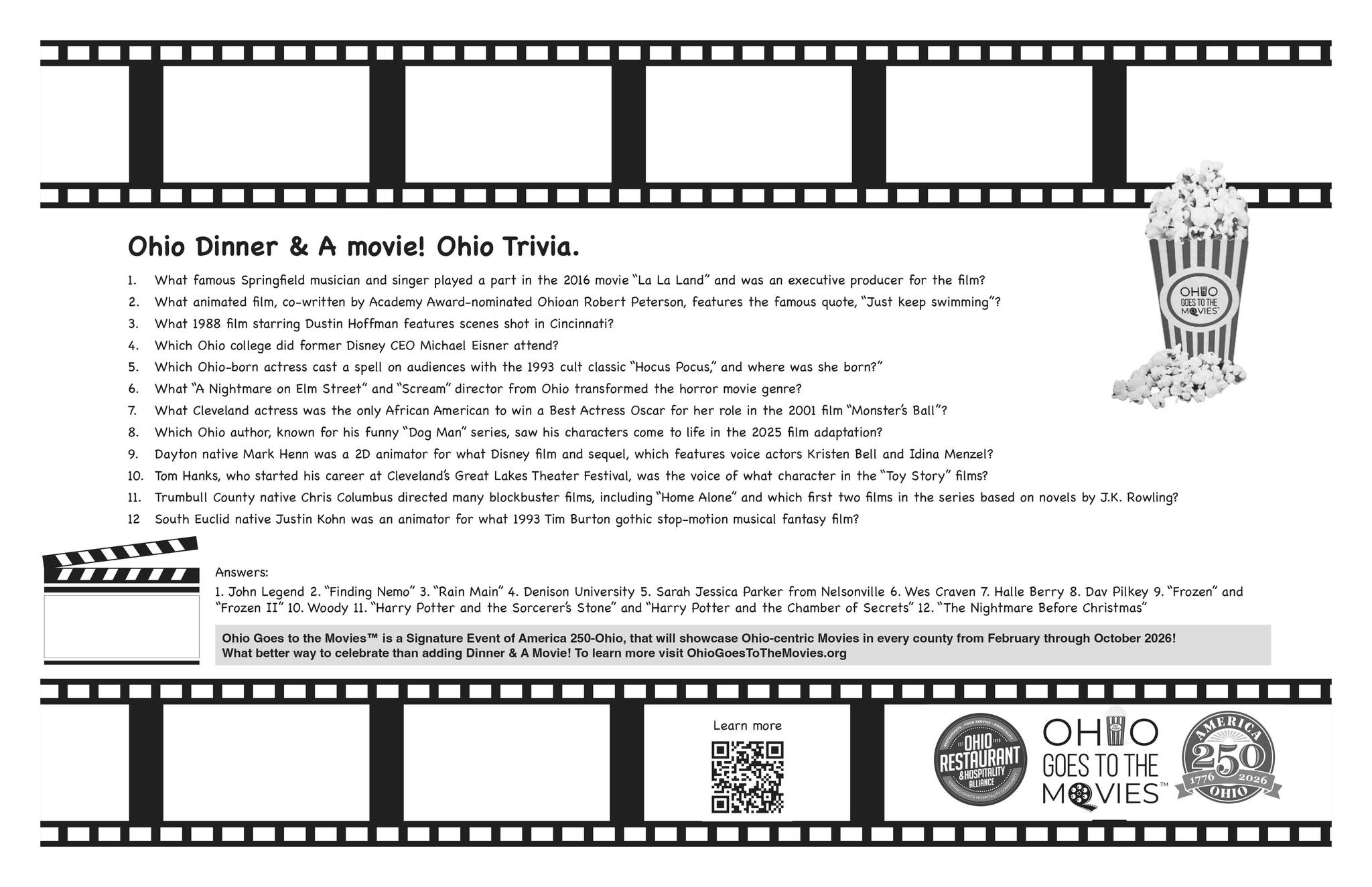 The OhioGoestotheMovies.org website offers inspiration with the Ohio Movie Database – a catalog of movies made in Ohio and Ohioans involved in those movies (actors, directors, writers, musicians, etc.) This approach allows you to tie-in throughout the 2026 celebration.