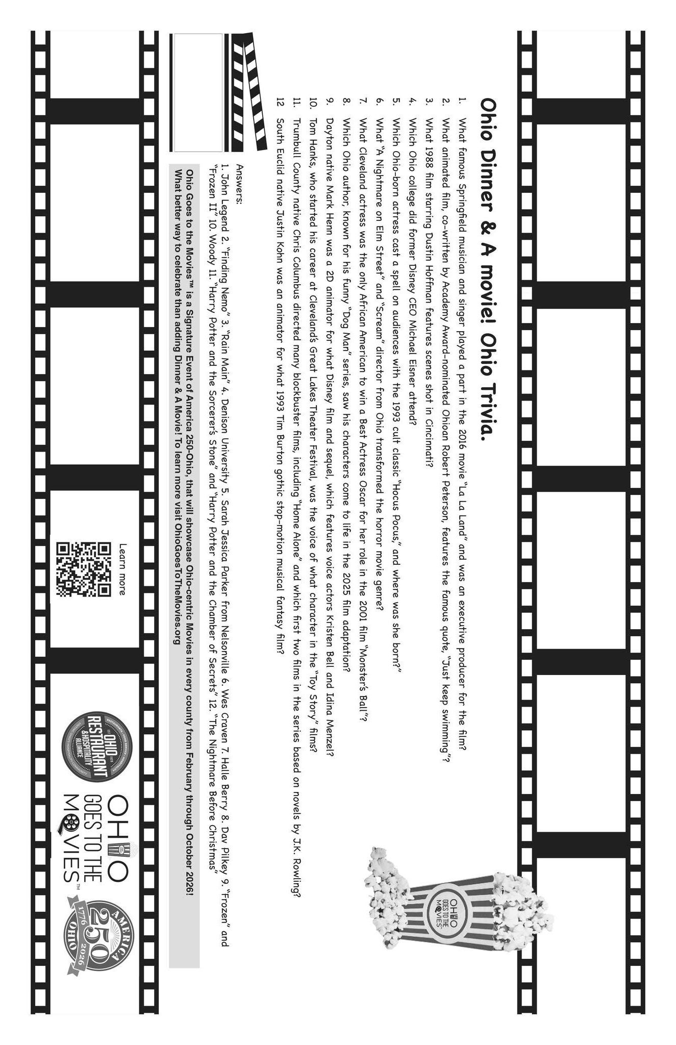 The OhioGoestotheMovies.org website offers inspiration with the Ohio Movie Database – a catalog of movies made in Ohio and Ohioans involved in those movies (actors, directors, writers, musicians, etc.) This approach allows you to tie-in throughout the 2026 celebration.